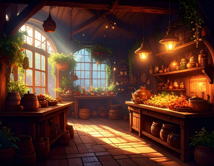 Firefly_Geschäft klein von innen aus holz geheimnisvoll im style von der serie arcane am morg 893768