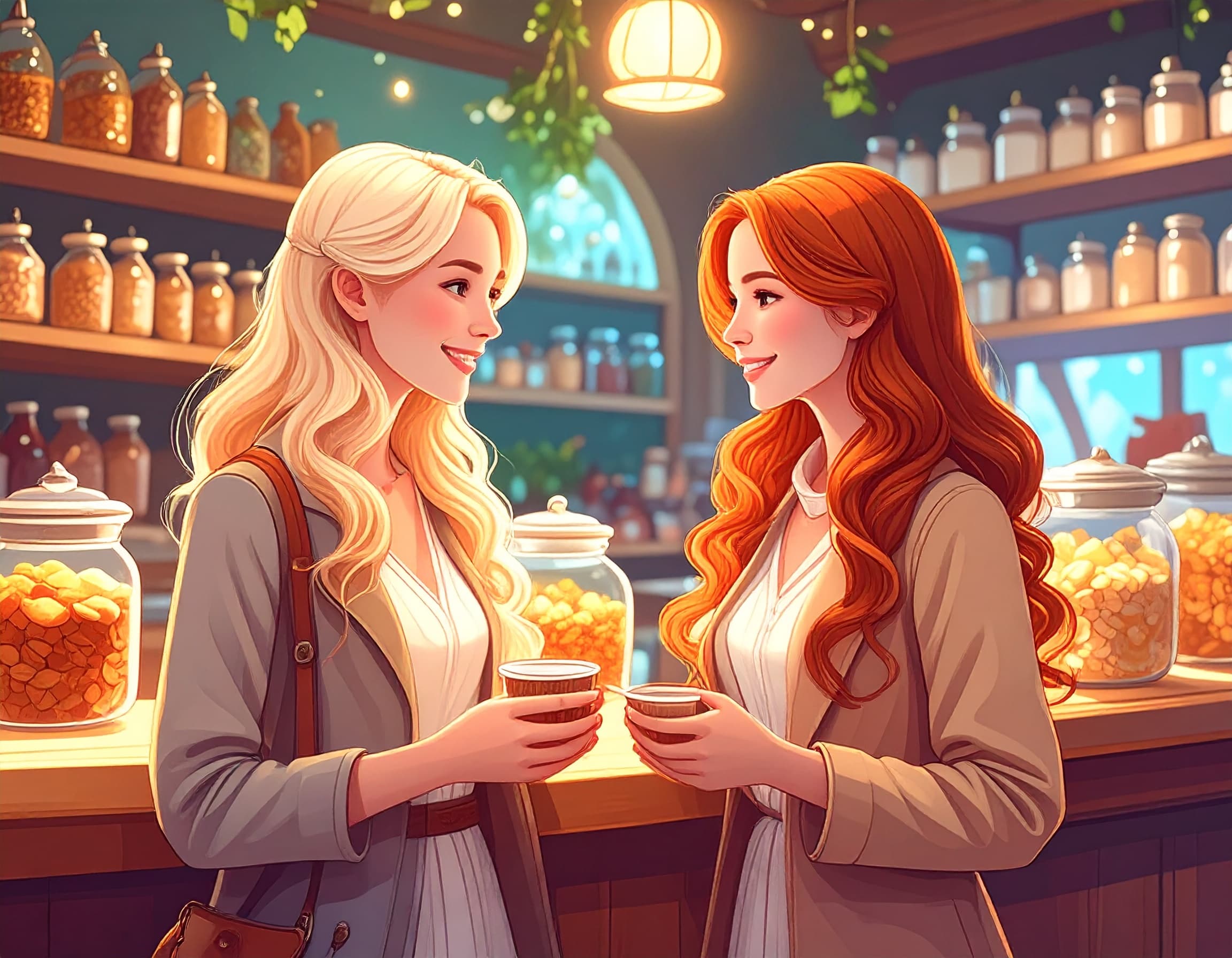 Firefly_serie arcane style 2 Mütter die an einemLadentresen stehen und sich unterhalten im st 358510