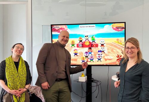 In den Osterferien fanden an der Junior Uni gleich zwei verschiedene dreitägige Kurse zum Thema Game Design und Programmieren statt: In Scratch programmierten die Kinder interaktive Osterkarten und ganze Spiele mit Steuerung, Punktestand und Hindernissen. Und eine zweite Gruppe stieg tief ins Level Design ein und gestaltete mit Bloxels eigene actiongeladene Geschicklichkeitsspiele mit Geschichten rund um Umweltschutz.